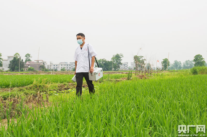 5月25日,江西省永新縣里田鎮(zhèn)下王村,陳時(shí)家行走在去村民家看病的路上
