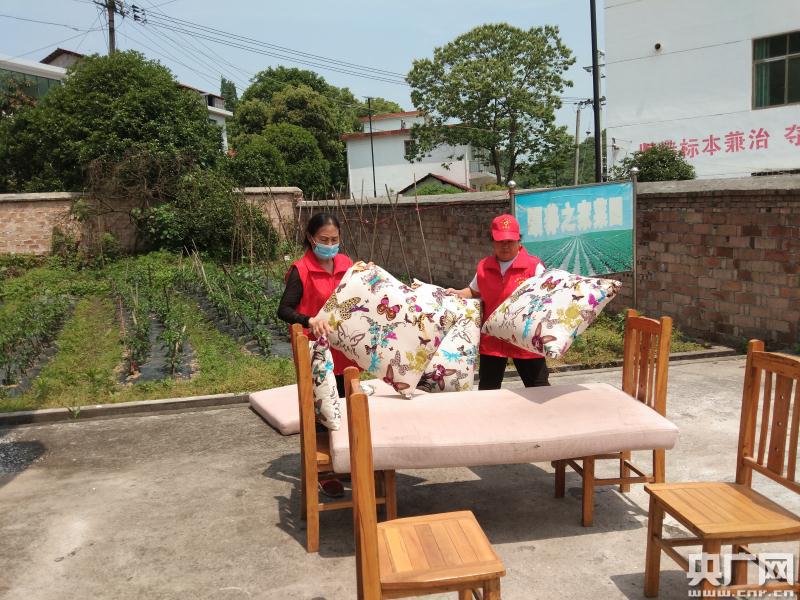 志愿者幫頤養(yǎng)之家曬沙發(fā)墊