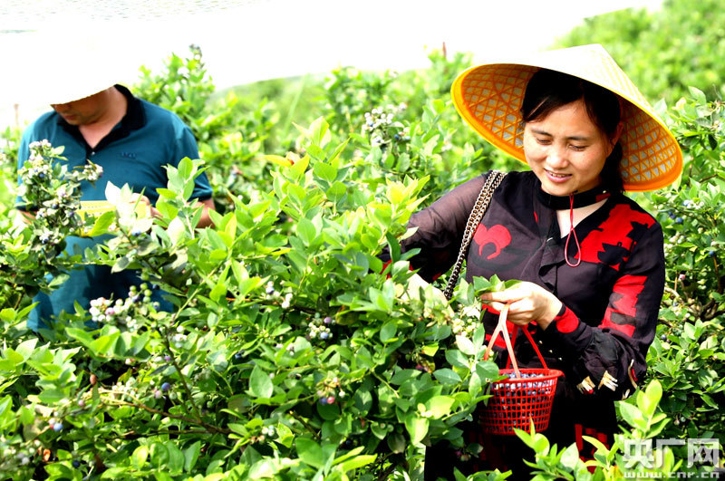 游客正在采摘藍(lán)莓(央廣網(wǎng)發(fā) 通訊員朱國(guó)朝 攝)