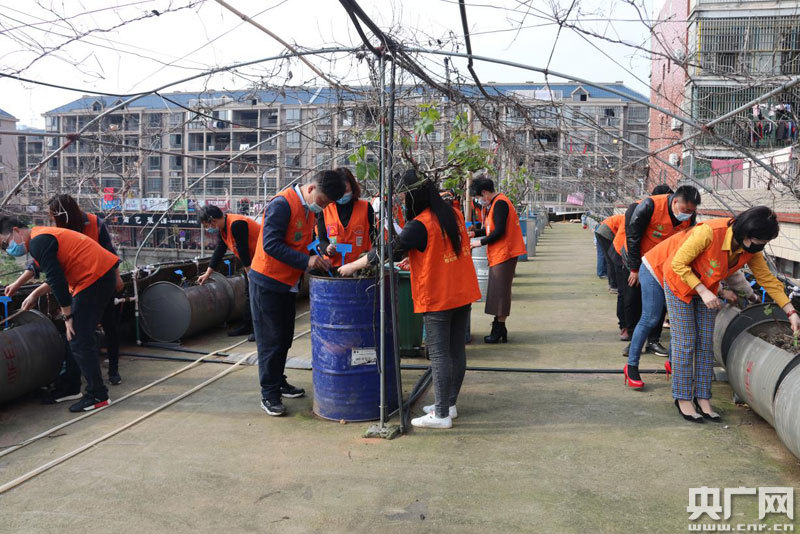志愿者在綠植園種下新的蔬菜
