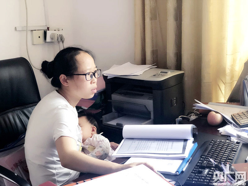寧怡娟來(lái)到村上第一件事便是學(xué)習(xí)扶貧信息錄入工作,具有脫貧攻堅(jiān)重要指導(dǎo)作用的貧困戶信息臺(tái)賬資料容不得一點(diǎn)馬虎,寧怡娟每天跟著第一書記上戶了解情況,做好筆記回到村上加班加點(diǎn)對(duì)現(xiàn)有的資料進(jìn)行整理更新。紫晴很乖知道媽媽工作辛苦,不吵不鬧喜歡一個(gè)人辦公室里畫畫、寫字,困了就睡在辦公室的沙發(fā)上。當(dāng)媽媽要去上戶的時(shí)候,她便會(huì)拍著手說:“我們帶著資料去出差咯!被顫娍蓯鄣淖锨绾苁軞g迎,村民們經(jīng)常來(lái)村委會(huì)辦事便會(huì)帶點(diǎn)零食給這個(gè)懂事的孩子。