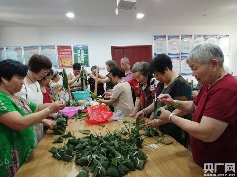 丹江街江礦社區(qū)舉辦的“包粽子”活動主要邀請留守老人參加。一片片翠綠的粽葉、一粒粒晶瑩的糯米,在一雙雙巧手下,變成了各式各樣清香誘人的粽子,大家說說笑笑圍站在一起,互相交流,互氣氛歡樂祥和,其樂融融如同一家人。