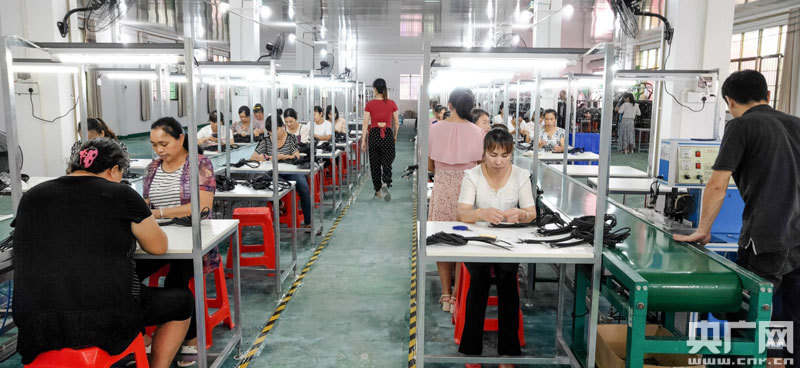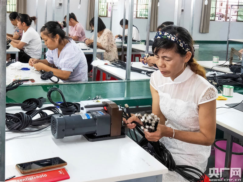 這幾天,王風(fēng)妹早上將孩子送到圩鎮(zhèn)上的學(xué)校,之后就到廠里上班,下午接孩子一起回家照顧老人!鞍诵r(shí)上班的話,按我這兩天的效率,一個(gè)月將近3000元,周未休假還能種地種菜"王風(fēng)妹說起話來笑靨如花。