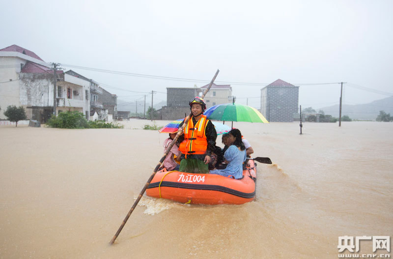 7月8日,位于江西省北部的九江市都昌縣遭遇暴雨襲擊。截止8日14時,當(dāng)?shù)?4小時最高降雨量超過400MM,多地出現(xiàn)洪澇災(zāi)害,大片農(nóng)田、房屋被淹,全縣24個鄉(xiāng)鎮(zhèn)22.8萬人不同程度受災(zāi),造成直接經(jīng)濟(jì)損失8000萬元。都昌縣啟動救災(zāi)二級應(yīng)急響應(yīng),組織消防、民兵、公安和黨員干部前往救援,共轉(zhuǎn)移被困群眾12800多人。