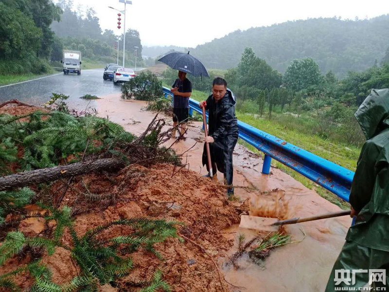 羅亭鎮(zhèn)因暴雨導致羅(亭)梅(嶺)公路主干道出現4處塌方,2處大型斜面滑坡。險情發(fā)生后,附近的紅源村干部先人工清理路面,保障道路盡快通行通行,接著,調集施工機械大面積的清理淤泥,組織對損毀公里的修復,盡快保障公路干線雙向暢通。