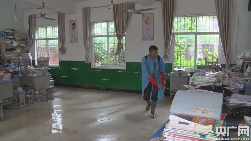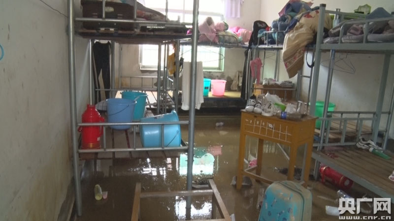 7月8日,山洪過后的鹽田中學(xué),學(xué)生宿舍一片狼藉(央廣網(wǎng)發(fā) 通訊員余齊民 攝)