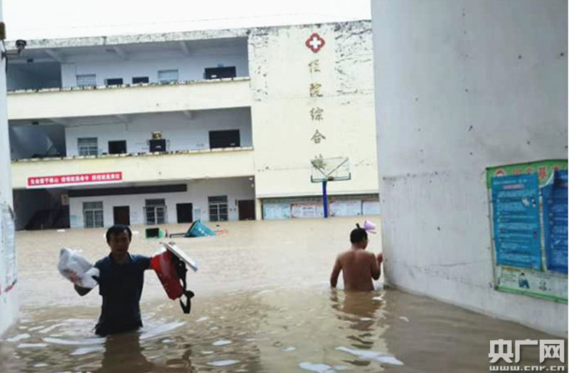 持續(xù)暴雨引發(fā)的山洪致蘇山鄉(xiāng)集鎮(zhèn)發(fā)生內(nèi)澇,當(dāng)?shù)匦l(wèi)生院地勢(shì)低洼,8日凌晨一樓浸水最深處達(dá)到1.5米。防汛值班醫(yī)生吳振中立即召集在附近居住的10名醫(yī)務(wù)人員緊急搶險(xiǎn),住院部一樓一名病患及家屬被迅速轉(zhuǎn)移,妥善安置在高層安全區(qū)域。醫(yī)務(wù)人員不顧洪水兇猛,蹚水轉(zhuǎn)運(yùn)醫(yī)療設(shè)備和藥品,挽回經(jīng)濟(jì)損失50余萬元。洪水漸漸退去,醫(yī)務(wù)人員清運(yùn)清理消毒繁忙,應(yīng)急門診從一樓臨時(shí)轉(zhuǎn)移到二樓辦公,正常的醫(yī)療秩序有序恢復(fù)。