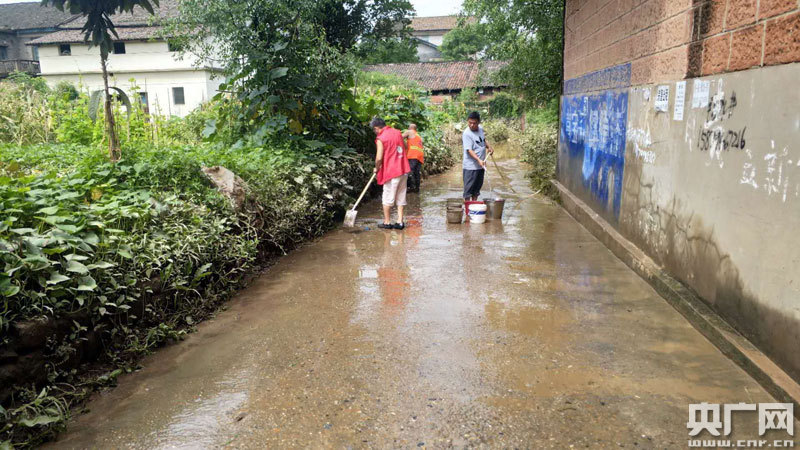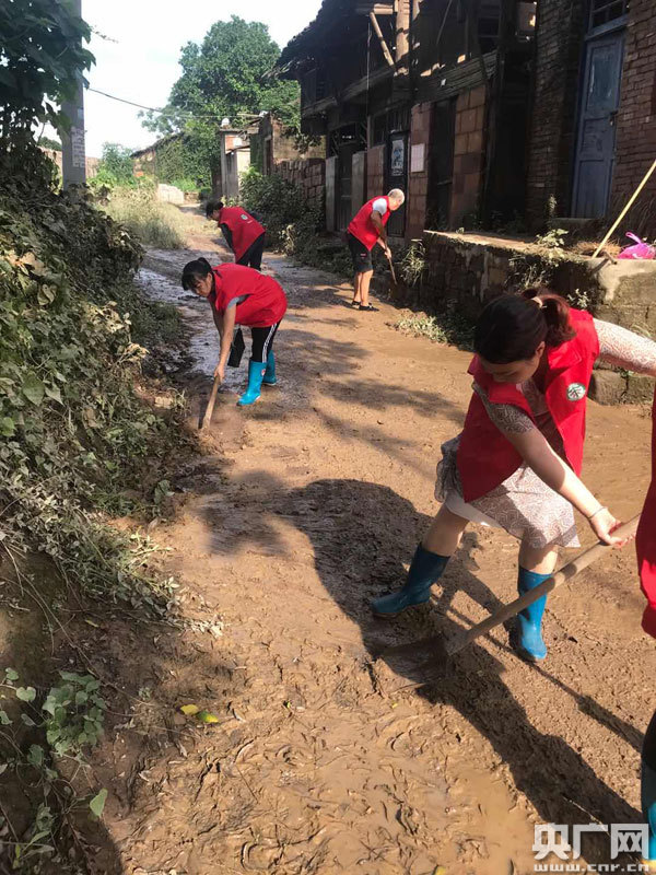 社區(qū)黨員、小組干部、熱心群眾共16名,手持鐵鏟、掃帚等工具在全社區(qū)各角落開(kāi)展清掃,還接了一根水管,將淤泥、垃圾等徹底沖刷干凈,使洪水退去的地方整潔一新。