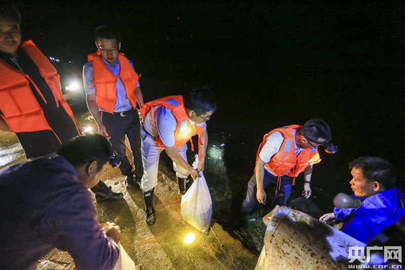 黨員群眾堅(jiān)守堤壩,緊急處置險(xiǎn)情(央廣網(wǎng)發(fā) 通訊員傅建斌 攝)