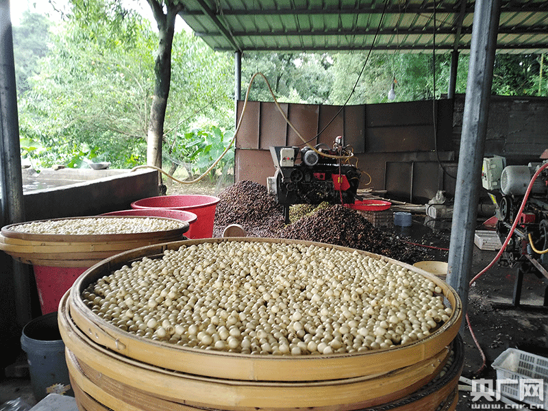 7月14日,江西分宜縣分宜鎮(zhèn)大臺(tái)村蓮子產(chǎn)業(yè)基地?zé)狒[非凡,村民們有的摘蓮蓬,有的剝蓮蓬,有的對(duì)剛脫殼的蓮子進(jìn)行清洗、提選、烘干,蓮子脫殼機(jī)隆隆地馬達(dá)聲,村民歡歌笑語(yǔ)聲,奏響了一首脫貧致富曲。