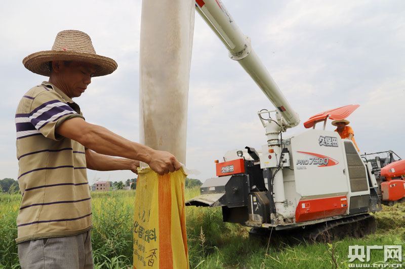 央廣網(wǎng)安福7月15日消息(記者鄧玉玲 通訊員劉麗強(qiáng) 龔莉)7月上旬以來,江西省吉安市安?h洲湖鎮(zhèn)王屯村活躍著一支特殊的早稻機(jī)收隊(duì),農(nóng)機(jī)手是建檔立卡貧困戶,收割的是貧困戶的早稻,這支早稻機(jī)收隊(duì)就是王屯村的“扶貧農(nóng)機(jī)”機(jī)收隊(duì)。