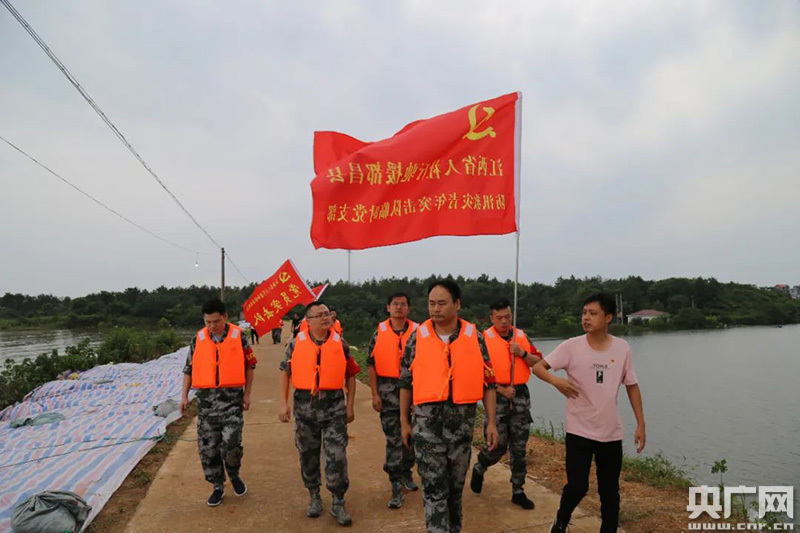 青年突擊隊隊長張祥鵬表示,入汛以來,江西省人社廳第一時間響應省委省政府號召,于19日上午派出第一批青年突擊隊,奔赴九江都昌薌溪鄉(xiāng)參與防汛救災任務。突擊隊員到達后,直奔圩堤對接任務,與當?shù)馗刹咳罕娡酝,參與24小時全天候巡堤查險工作。