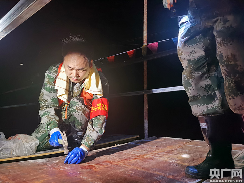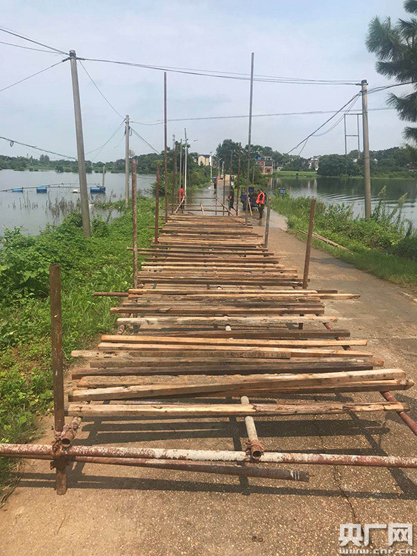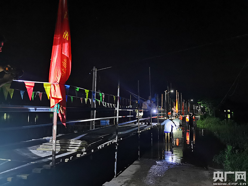 當?shù)貫楸U洗迕癯鲂,決定在薌溪鄉(xiāng)新興村委會路段搭建臨時通道,江西省人社廳青年突擊隊了解到這一情況后,第一時間向鄉(xiāng)防汛抗洪指揮部請戰(zhàn)。21日傍晚,天氣炎熱,室外氣溫達到35度,10名突擊隊員與鄉(xiāng)村干部一道迅速展開施工,搬腳手架、協(xié)作搭建、加固接口、鋪設木板……大家克服夜間施工視線不好、蚊蟲叮咬等困難,揮汗如雨,干得熱火朝天。