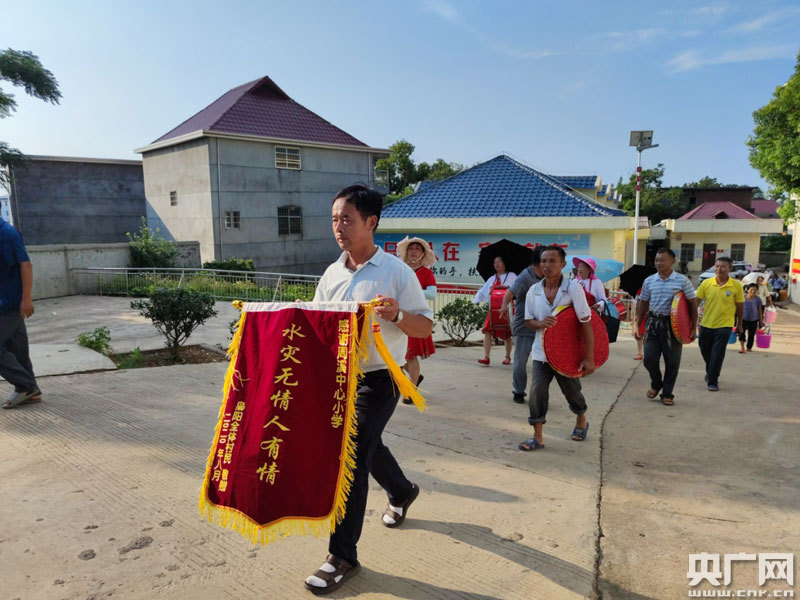 當(dāng)天,梟陽(yáng)村10余名村民代表帶著兩面印有“水災(zāi)無(wú)情人有情”的錦旗,敲鑼打鼓分別送到周溪鎮(zhèn)人民政府和中心小學(xué)集中安置點(diǎn)。梟陽(yáng)村委會(huì)主任邵慶紅說(shuō):“敬贈(zèng)錦旗,表達(dá)的不僅是村民的感謝之情,也是對(duì)黨員干部踐行生命至上理念的贊揚(yáng)。”