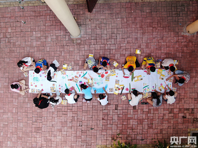 同學(xué)們在白紙上畫上自己喜歡的蔬菜瓜果,繪出心中的文明餐桌(央廣網(wǎng)發(fā) 通訊員 攝)