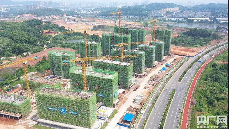 走在施工現(xiàn)場(chǎng)內(nèi)部的道路旁,不時(shí)有幾輛白色的巨型水泥攪拌車緩慢穿過,綠色的圍擋掛在已建成的大樓周圍,幾臺(tái)黃色大吊臂在空中工作,鋼筋水泥等碰撞聲此起彼伏,前面幾棟高層建筑即將封頂,一切都在井然有序地進(jìn)行中。今年完工之時(shí),這里將是宜居安居的好地方。