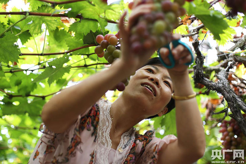 村民采摘葡萄(央廣網(wǎng)發(fā) 通訊員供圖)