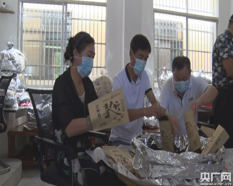 扶貧干部正在打包茶葉(央廣網(wǎng)發(fā) 通訊員鄧冬攝)