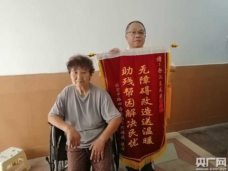 央廣網(wǎng)余江9月18日消息(記者王一凡 通訊員汪有輝)“以前我想爬上二樓簡直是奢望,現(xiàn)在我不但自己能爬上二樓,還能在二樓居住,我太高興了。感謝殘聯(lián)領導的關心,我難以表述我內心的感激之情,所以請人制作了一面錦旗。”近日,今年57歲的鄧福蓮拿著一面寫有“無障礙改造送溫暖,助殘幫困解決民憂”的錦旗,激動地對余江區(qū)殘聯(lián)干部吳永東說道。