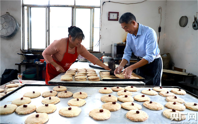 駱細(xì)蒙和妻子制作手工發(fā)餅