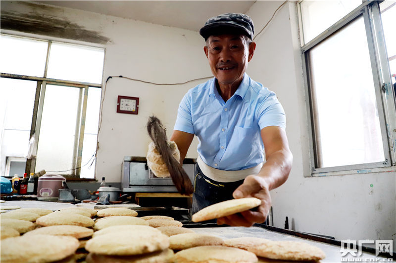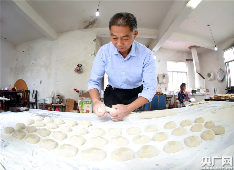 央廣網(wǎng)湖口9月24日消息(記者胡斐 通訊員鄭飛華)9月23日,記者走進(jìn)江西省湖口縣大垅鄉(xiāng)集鎮(zhèn)一家傳統(tǒng)手工糕點(diǎn)作坊,只見五六個(gè)糕點(diǎn)師傅正在忙著伴粉、揉團(tuán)、滾坯、壓坯、拉麻、烘烤、包裝,一個(gè)個(gè)剛出爐的發(fā)餅香味彌漫。
