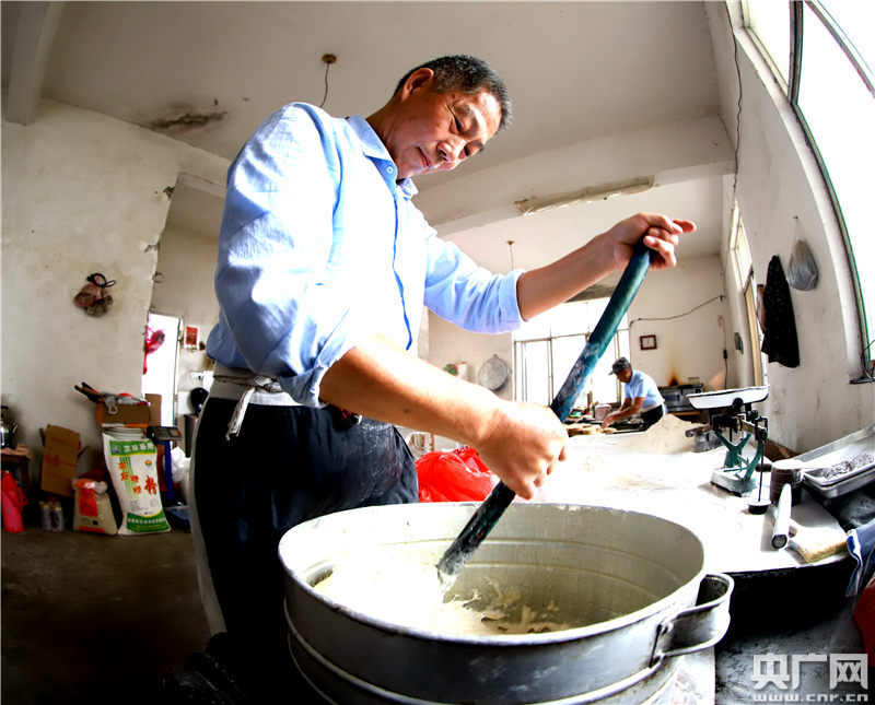這家糕點(diǎn)作坊的主人叫駱細(xì)蒙,今年68歲。他說 ,從15歲起學(xué)徒,做發(fā)餅、雞蛋糕、綠豆糕、堿酥餅等糕點(diǎn),至今從沒有間斷過。一年的端午節(jié)、中秋節(jié)等前夕,是他們最忙的時(shí)候,每天6點(diǎn)鐘開始做到晚上7點(diǎn),今年中秋月餅的生意好,就增加些人手,一天能做100多斤。