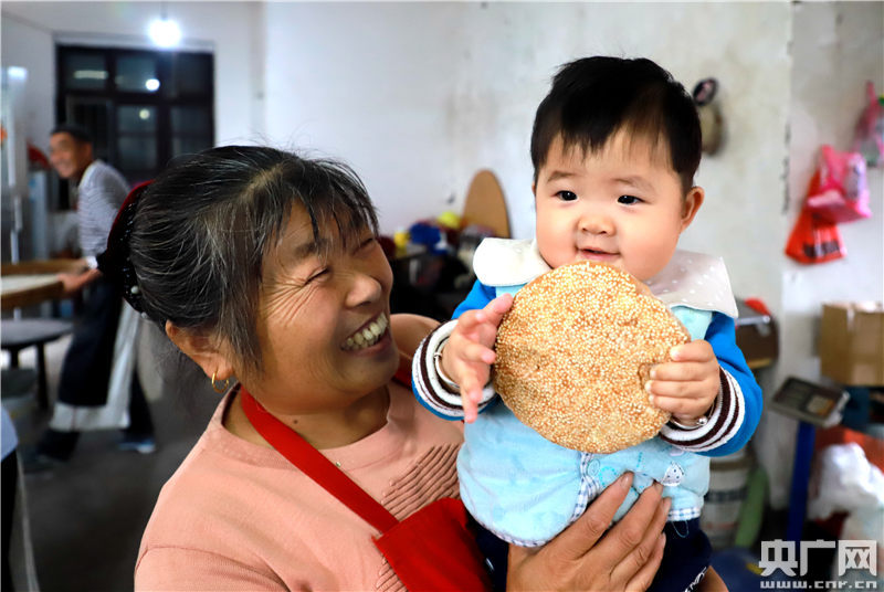 如今,市場上各種花樣、口味的月餅層出不窮,滿足了不同人群的需求,但是吃口保持老味道的傳統(tǒng)手工月餅,總能勾起人們對(duì)往日的美好回憶!拔乙彩锹勚銡膺^來買點(diǎn)發(fā)餅回去,大人小孩都喜歡吃,每年都到這家來買,貨真價(jià)實(shí)!薄疤贸,香甜,我從小就喜歡吃這個(gè)月餅。”……就這樣,他家一直秉承傳統(tǒng)手工制作各種糕點(diǎn),在節(jié)前,絡(luò)繹不絕的顧客前來購買各種糕點(diǎn)。