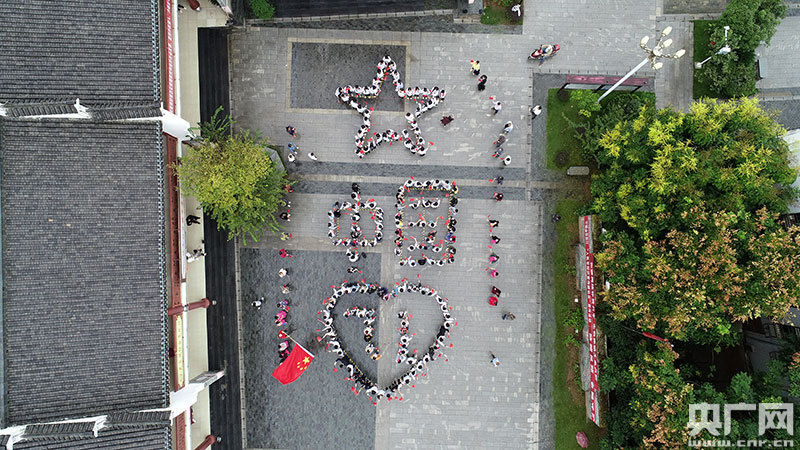 居民擺出了字幅圖案獻(xiàn)禮祖國(央廣網(wǎng)發(fā) 通訊員提供)