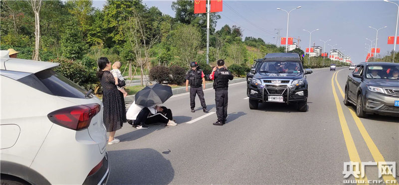 看到小女孩額頭摔破出血,陳芳撥打120急救電話。由于當時太陽高照,陳芳抱著孩子護在小女孩身邊,讓丈夫從車上拿了一把傘,給小女孩遮陽。