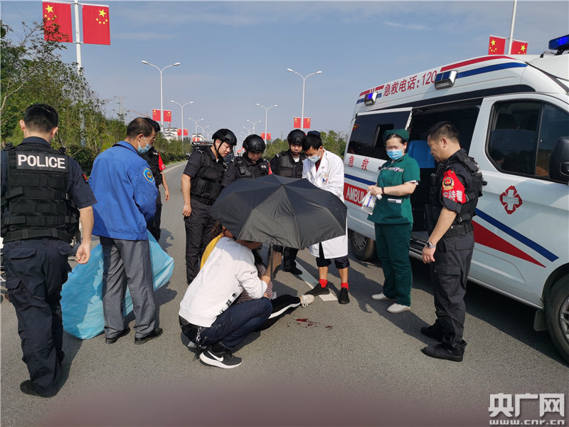 執(zhí)勤路過此地的吳小勇等幾名特巡警看到后,用人墻和警車為受傷女孩圍了一道保護屏障。等120救護車趕到后,幾名特巡警和醫(yī)護人員一起把受傷女孩抬到了救護車上。