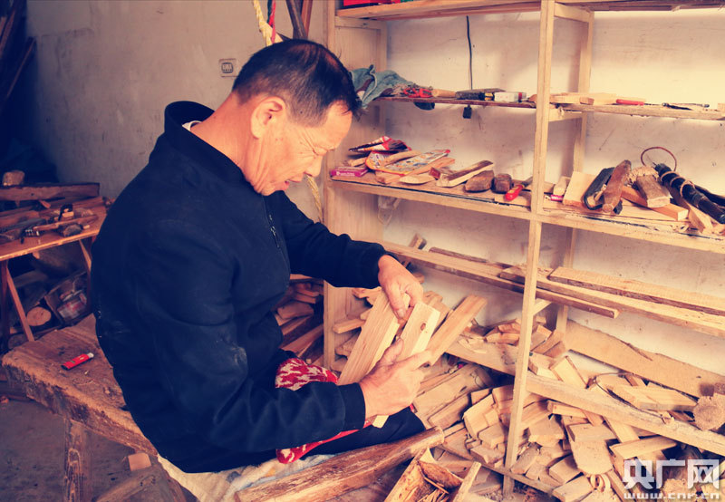 周有根在做木工活(央廣網(wǎng)發(fā) 通訊員胡菊妹 攝)