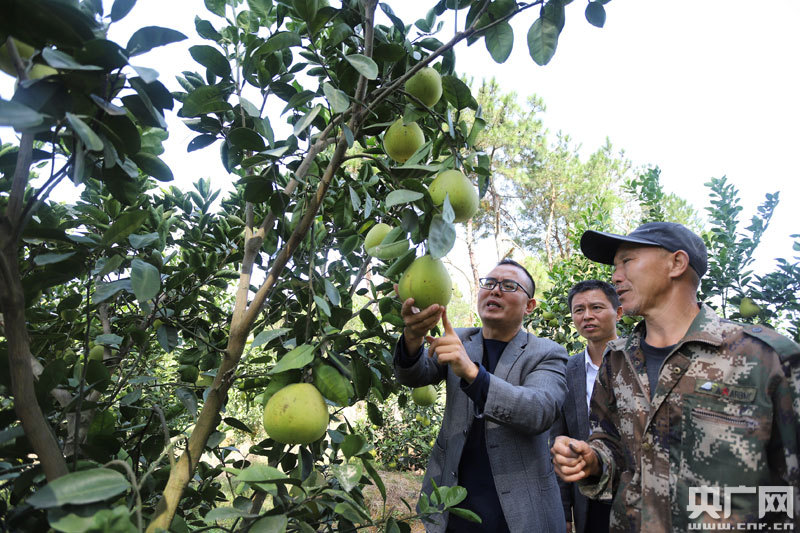 安?h平都鎮(zhèn)農(nóng)業(yè)農(nóng)村辦果業(yè)技術(shù)員王小壇在柚子園開展技術(shù)指導(dǎo)