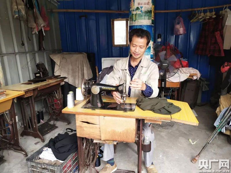 在新鋼步行街,傅水根的裁縫店已經(jīng)開了多年,由于為人實在且手藝好,周邊的居民都愛來他店里照顧生意,一年的收入也能有三至四萬元,這是傅水根一家的收入主要來源。