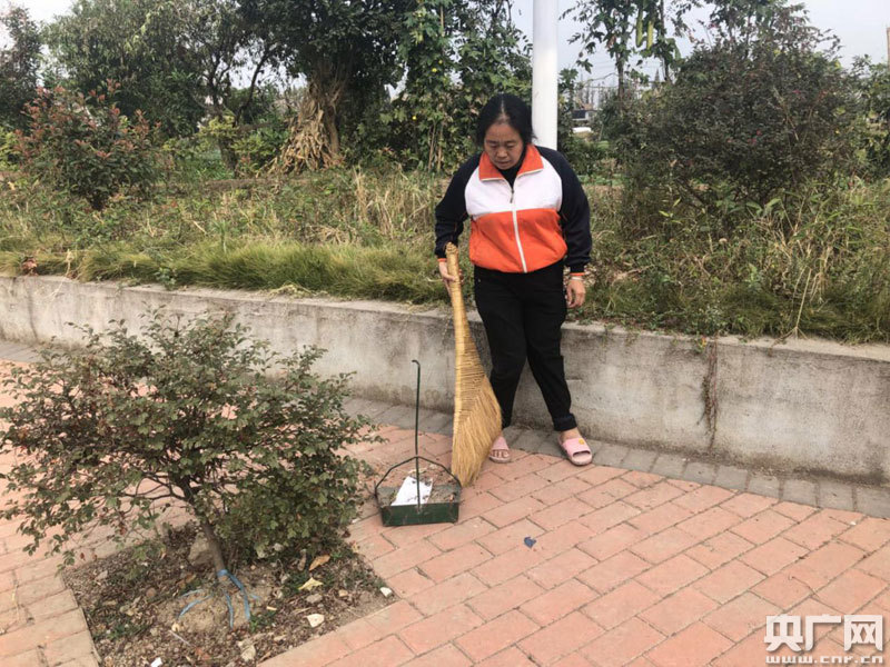 龔紅紅在村委搞衛(wèi)生(央廣網(wǎng)發(fā) 通訊員供圖)