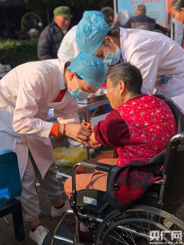 醫(yī)護人員為敬老院老人測血糖(央廣網(wǎng)發(fā) 通訊員供圖)