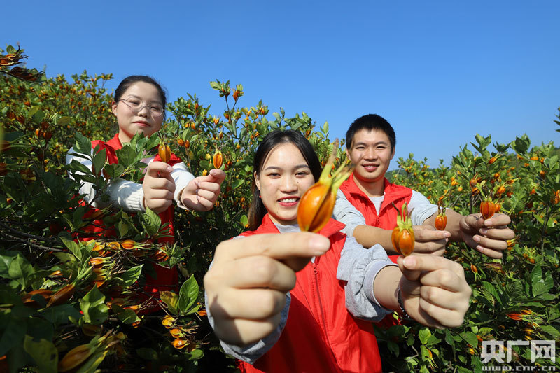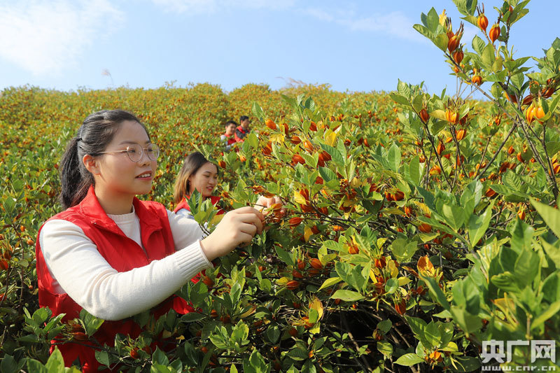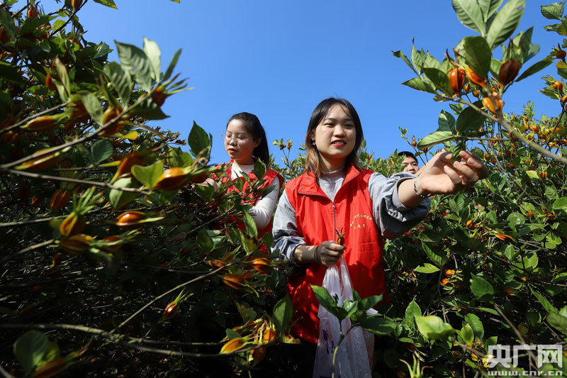 志愿者在采摘水梔子(央廣網(wǎng)發(fā) 通訊員劉麗強(qiáng) 攝)