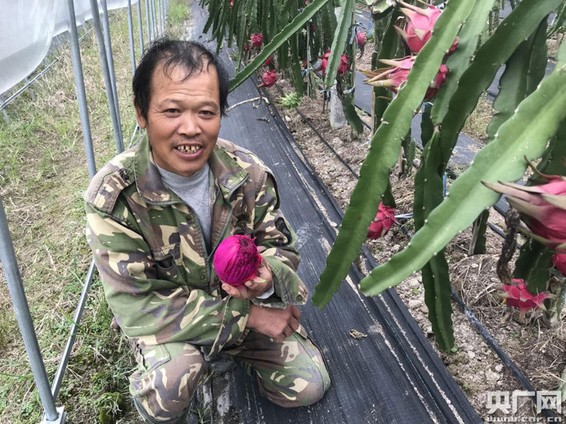 該村村民錢冬寶以前一直在外地從事種植行業(yè),有豐富的種植經(jīng)驗(yàn),4年前不慎腿部嚴(yán)重受傷,成了村里的貧困戶。傷愈后村兩委為了幫助他實(shí)現(xiàn)家門口結(jié)業(yè),聘用他到基地從事生產(chǎn)管理工作,每月固定工資3600元。貴溪市流口鎮(zhèn)新溪村村民錢冬寶:“感謝國(guó)家照顧,現(xiàn)在政策好,還得了低保,現(xiàn)在種植火龍果,不僅有收入,還可以在家里附帶做家務(wù),照顧家里!