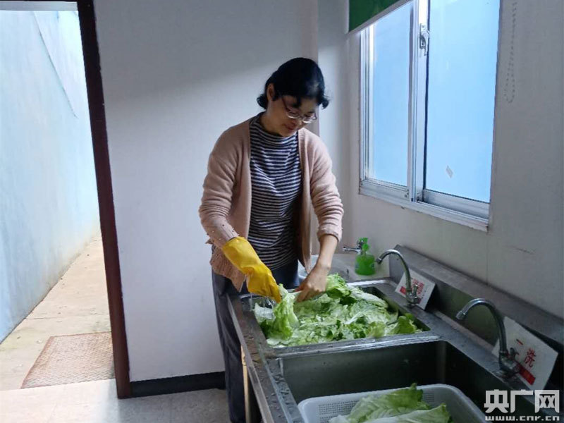 賴世英在幼兒園廚房工作(央廣網(wǎng)發(fā) 通訊員供圖)
