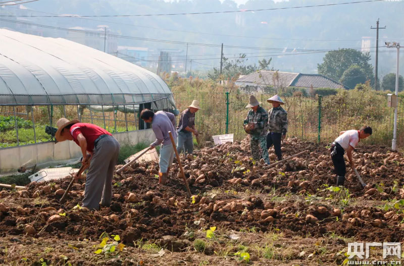 陳海艷和工友們正在挖番薯