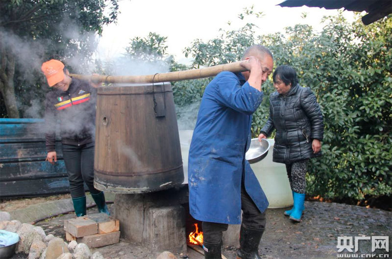 村民正在制作番薯酒