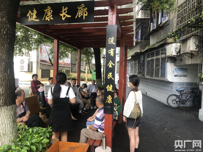 老人們?cè)诮】甸L(zhǎng)廊開(kāi)展養(yǎng)生知識(shí)宣傳活動(dòng)