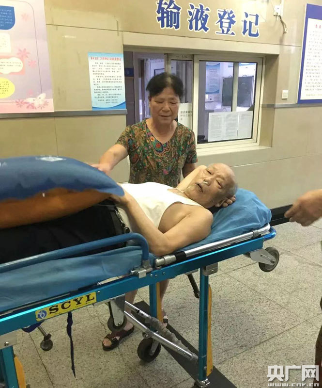 68歲袁枝蘭護(hù)送八旬郗老前往醫(yī)院救治