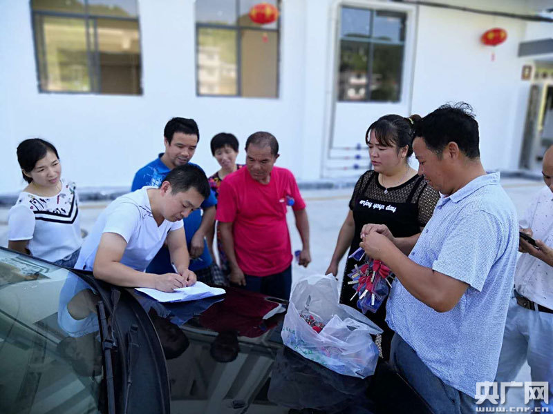 鄉(xiāng)扶貧工作站人員給貧困戶發(fā)放住房鑰匙(央廣網(wǎng)發(fā) 通訊員供圖)