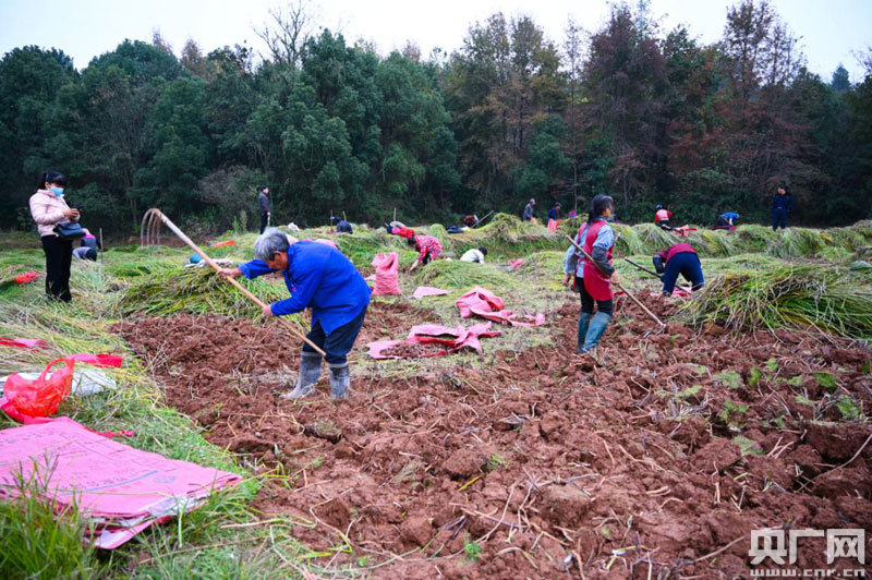 羅田村黨支部書記嚴小書介紹說:“我村今年種了53畝荸薺,年產(chǎn)20多萬斤,收入可以達到100多萬,今天荸薺開始開挖,人數(shù)有40多個,貧困戶有5個!
