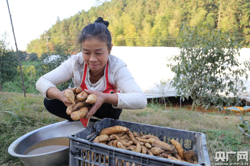 農(nóng)戶在清洗剛采收的天麻(央廣網(wǎng)發(fā) 通訊員供圖)