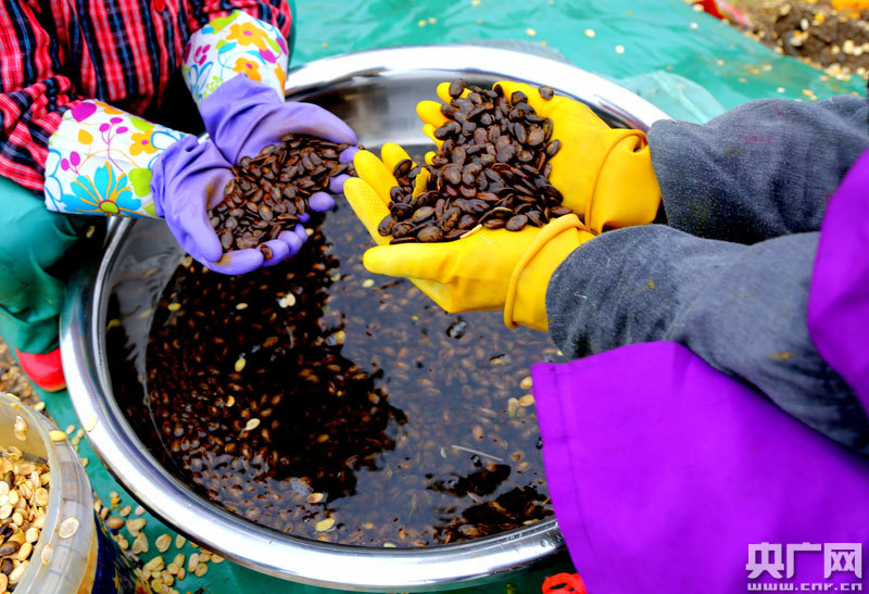 “在這里上班很好很輕松,離家里也很近,照顧家里也方便,不用出去打工,有70塊錢一天,感到很滿足!惫と撕嗡m正在剝瓜瓤去瓜子,對這個讓她增收的產業(yè)基地她有深厚感情。