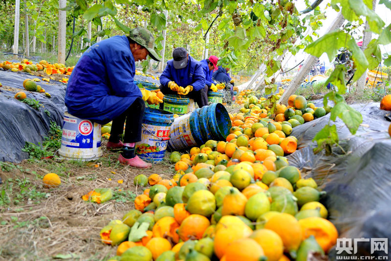 工人正在處理剛采摘的瓜蔞(央廣網(wǎng)發(fā) 通訊員供圖)
