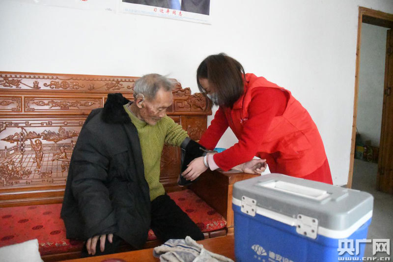 家庭醫(yī)生上門為貧困戶測(cè)量血壓(央廣網(wǎng)發(fā) 通訊員曾莉 攝)