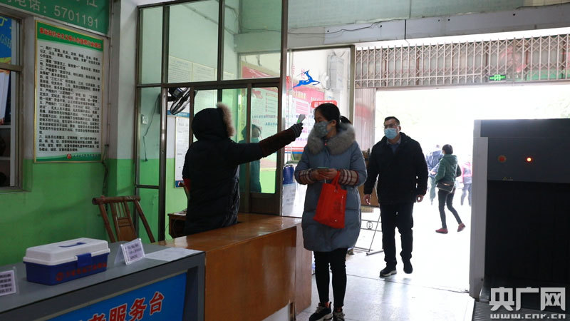 萬安客運車站對過往旅客進行體溫檢測(央廣網(wǎng)發(fā) 通訊員供圖)