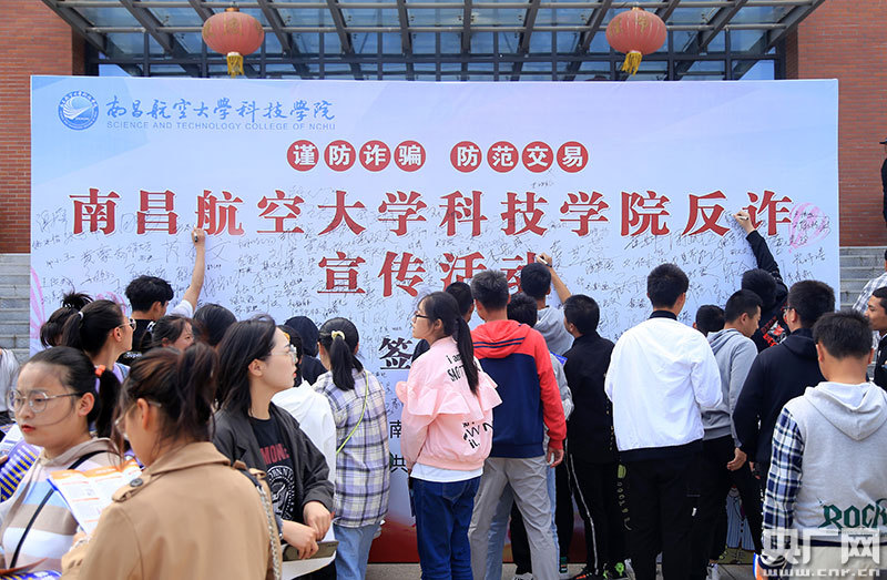 參加活動的各高校師生代表在反詐宣傳簽名板上寫下自己的名字,支持宣傳活動(央廣網(wǎng)發(fā) 通訊員劉志堅(jiān) 攝)